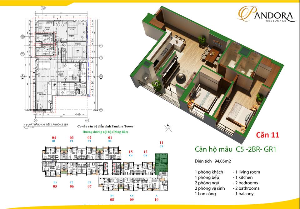 – Tổng số 286 căn hộ: 176 căn 2PN và 110 căn 3PN trong đó: