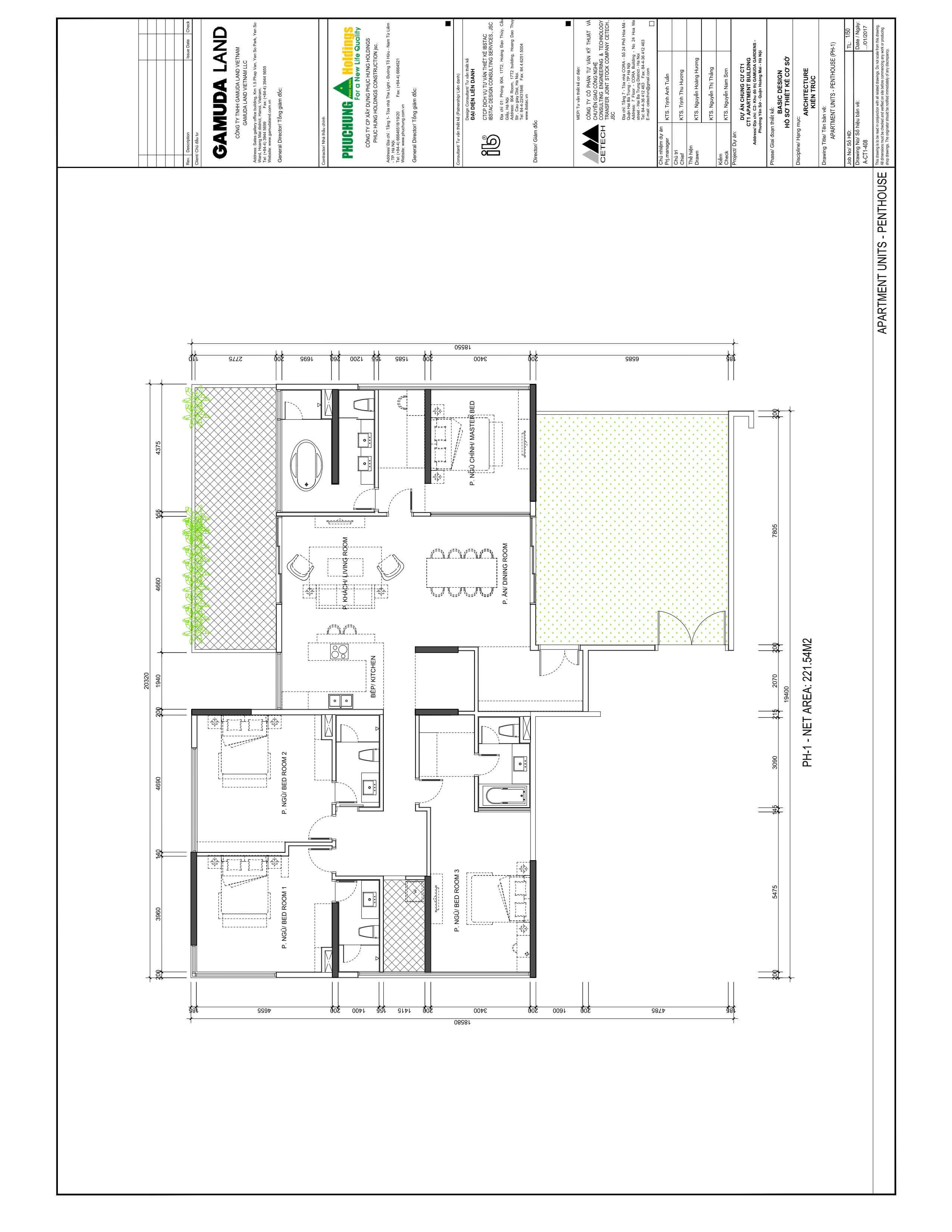 Bản vẽ cad căn hộ penthouse- 1, Diện tích 221.54m2, chung cư The Zen Residence Khu đô thị Gamuda Gardens, Phường Trần Phú, Quận Hoàng Mai, Hà Nôi