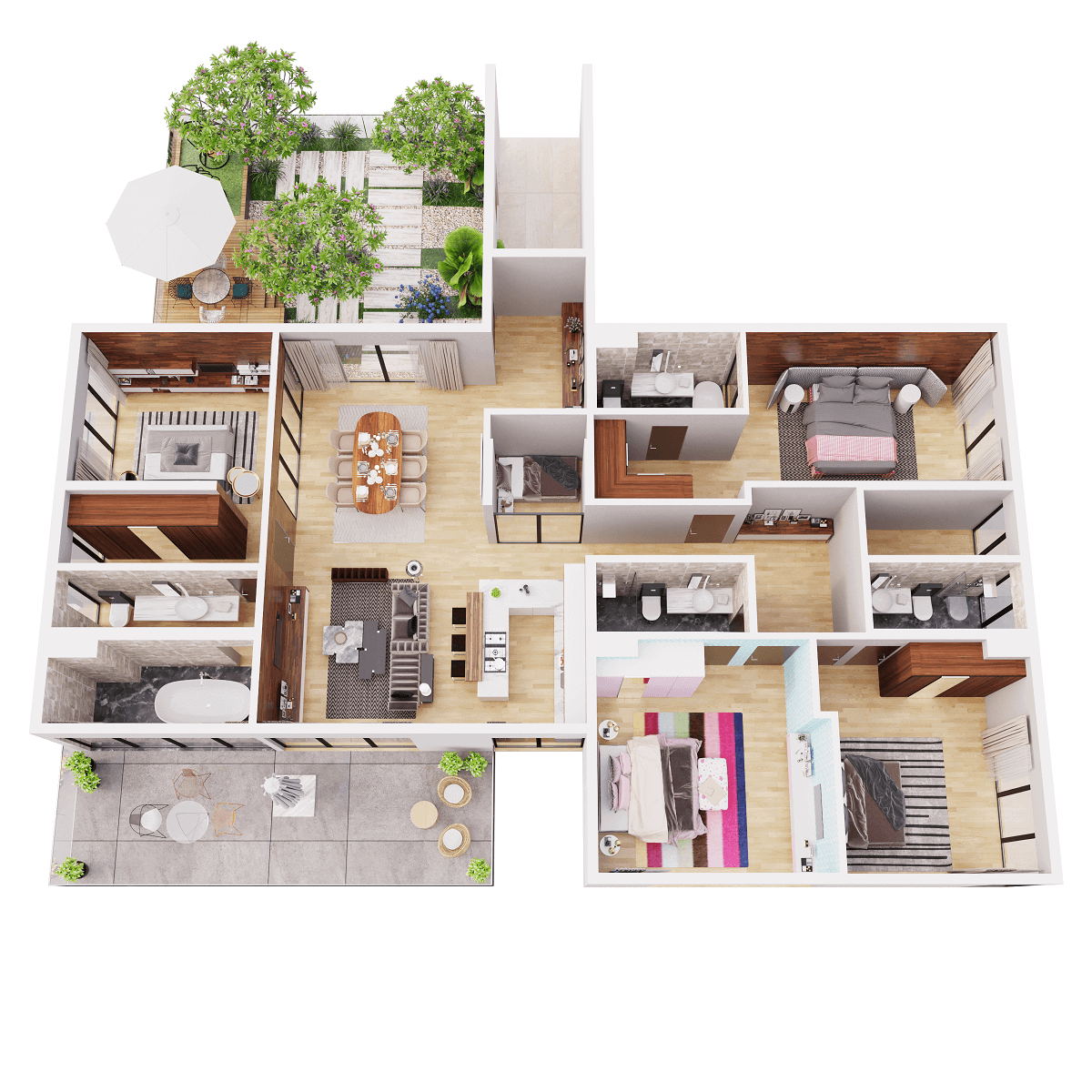 Thiết kế 3D căn hộ penthouse- 1, Diện tích 221.54m2, chung cư The Zen Residence