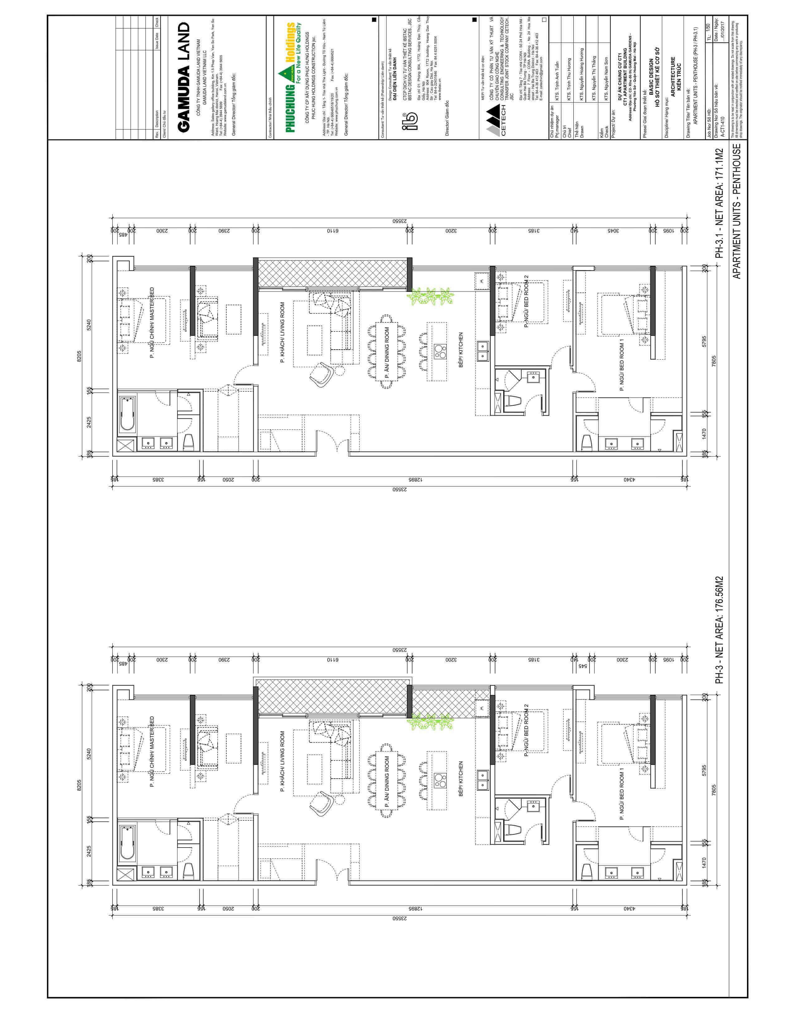 Bản vẽ cad căn hộ penthouse PH-3-1, diện tích 176.56m2 chung cư The Zen Residence Khu đô thị Gamuda Gardens, Phường Trần Phú, Quận Hoàng Mai, Hà Nôi