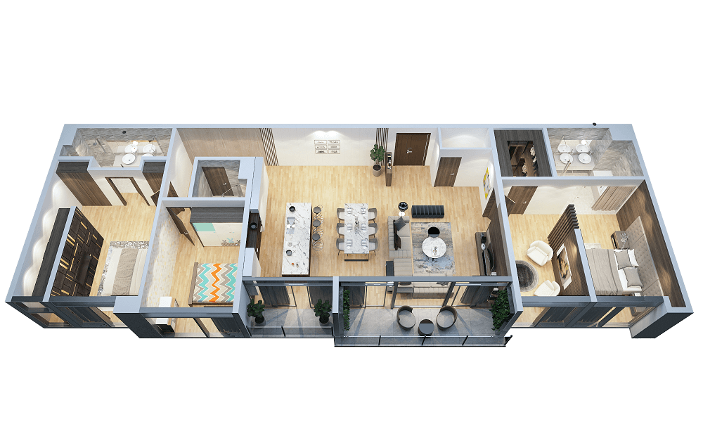 Thiết kế 3D căn hộ penthouse PH-3-1, diện tích 176.56m2 chung cư The Zen Residence
