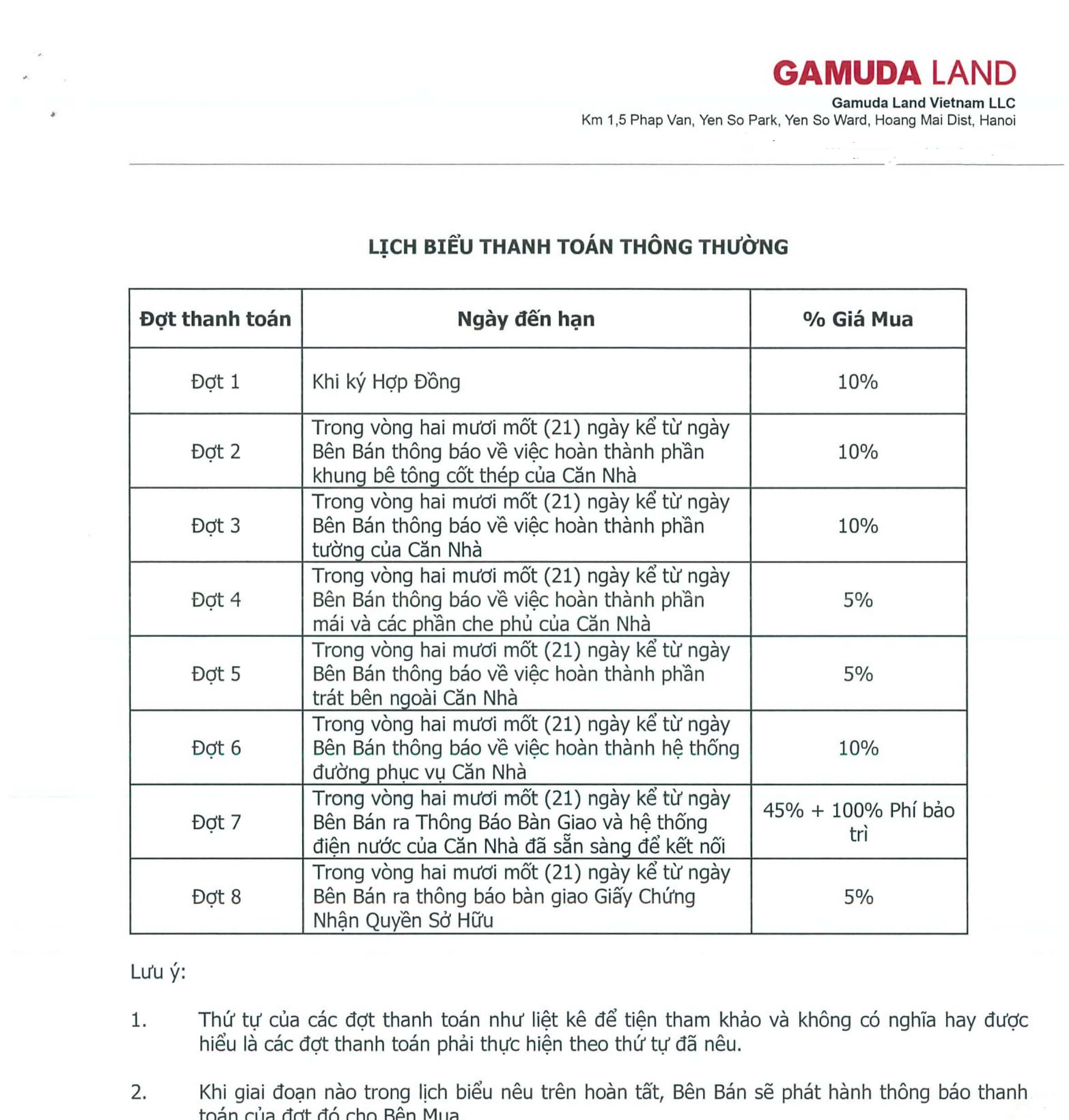 Tiến độ thanh toán trả thường biệt thự song lập SD42 – Azalea Homes