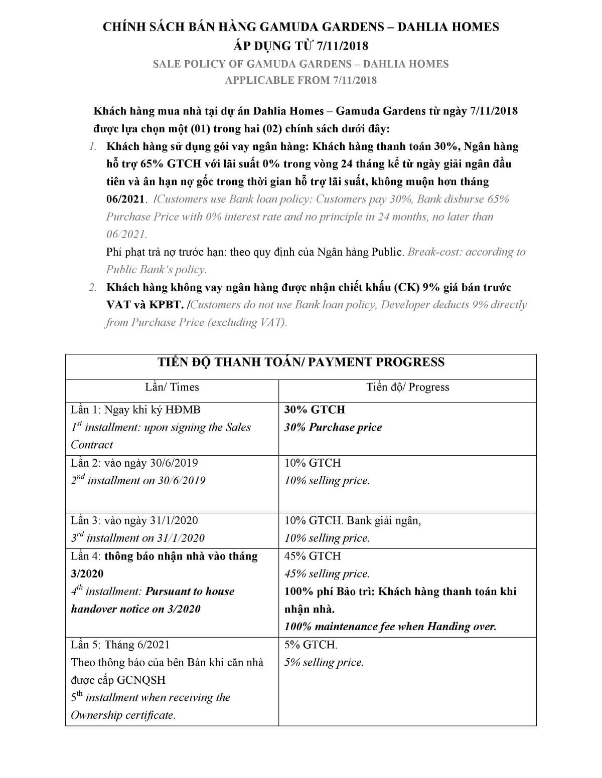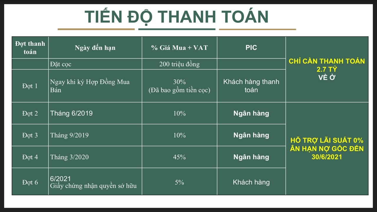 Tiến độ thanh toán liền kề Dahlia Homes ( Hoa Thược Dược )