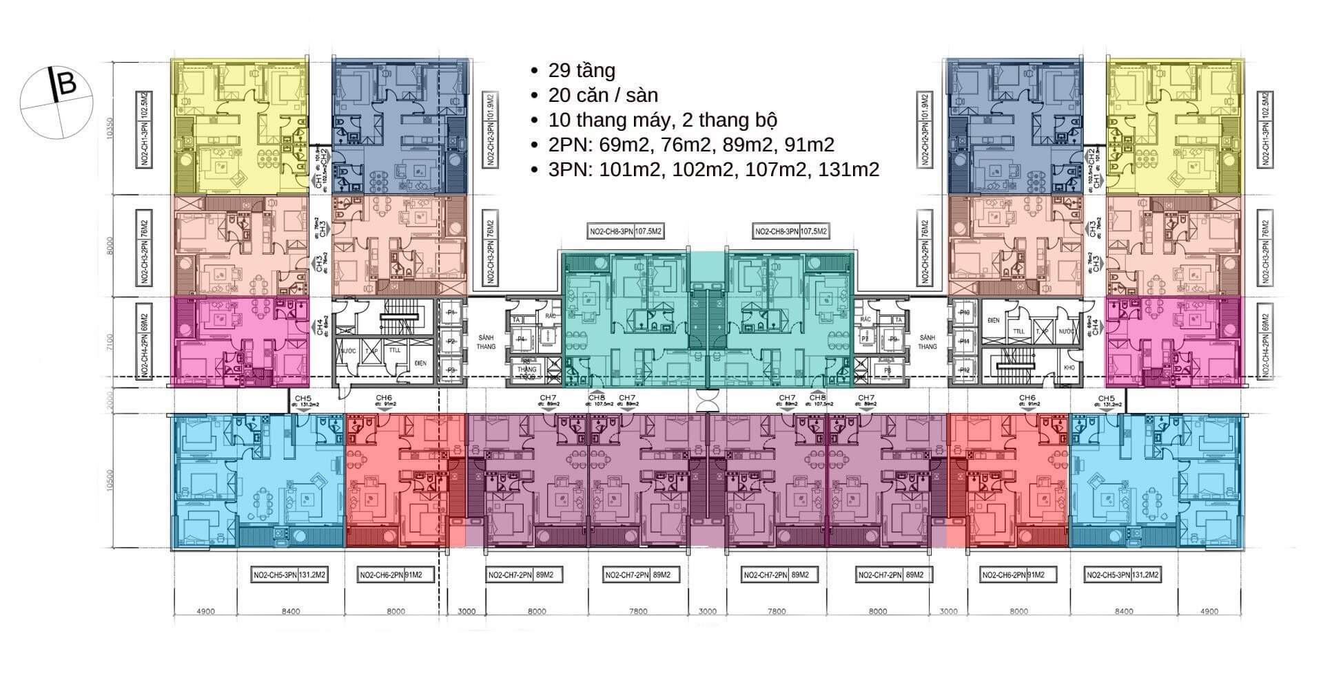 ? Diện tích 2 ngủ: 69-76-89-91m2