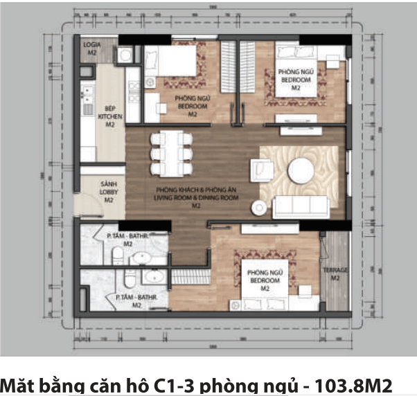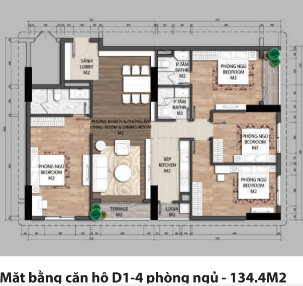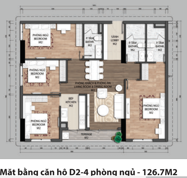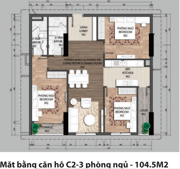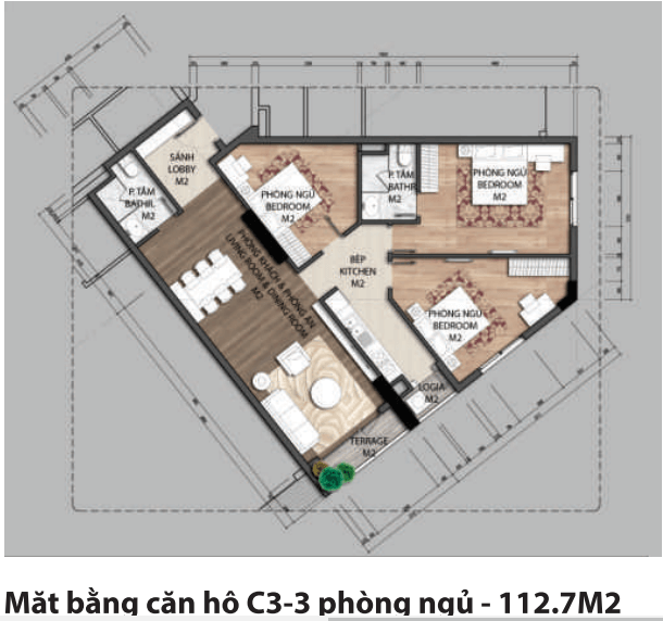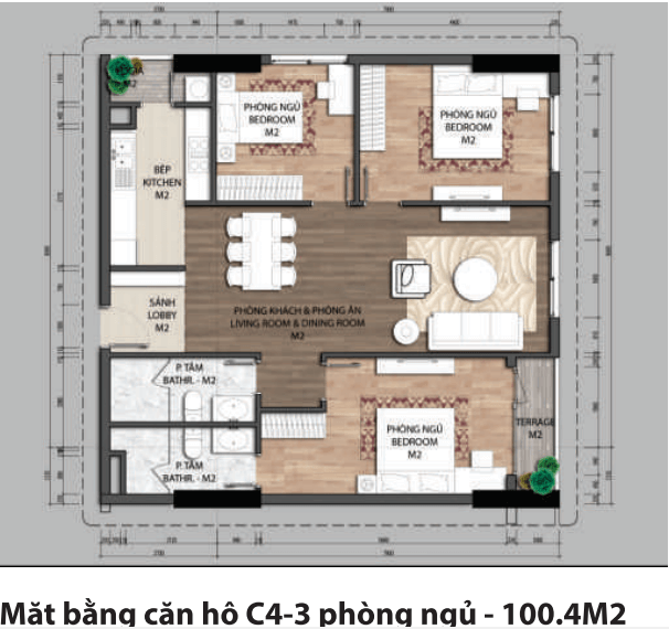 Thiết kế căn hộ 3D chung cư Trinity Tower Mễ Trì