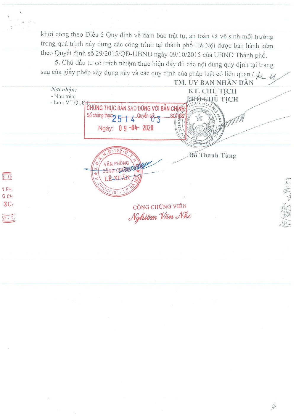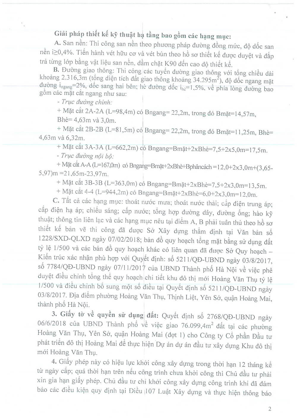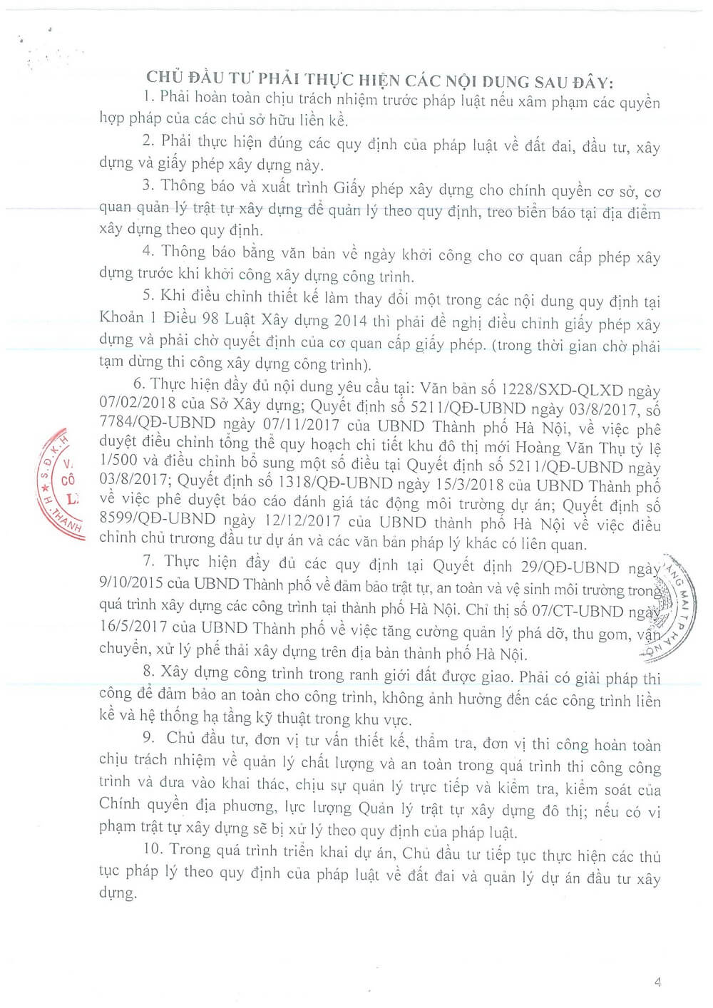Giấy phép xây dựng số 400 cấp cho Công ty Cổ phần Đầu tư phát triển đô thị Hoàng Mai dự án Khu đô thị Hoàng Văn Thụ.