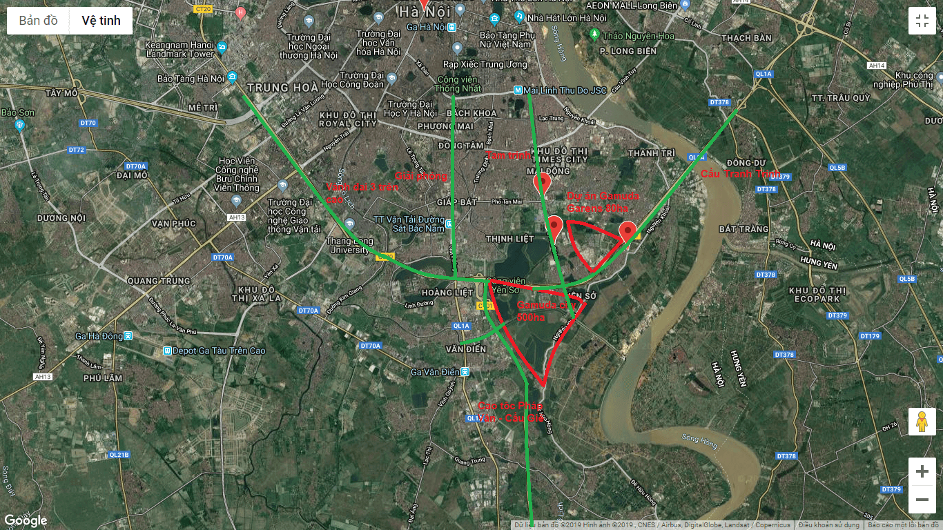 Vị trí dự án Khu đô thị Gamuda City của Chủ đầu tư Gamuda land tại Km 1.5 Pháp Vân, Phường Yên Sở, Quận Hoàng Mai, Thành Phố Hà Nội
